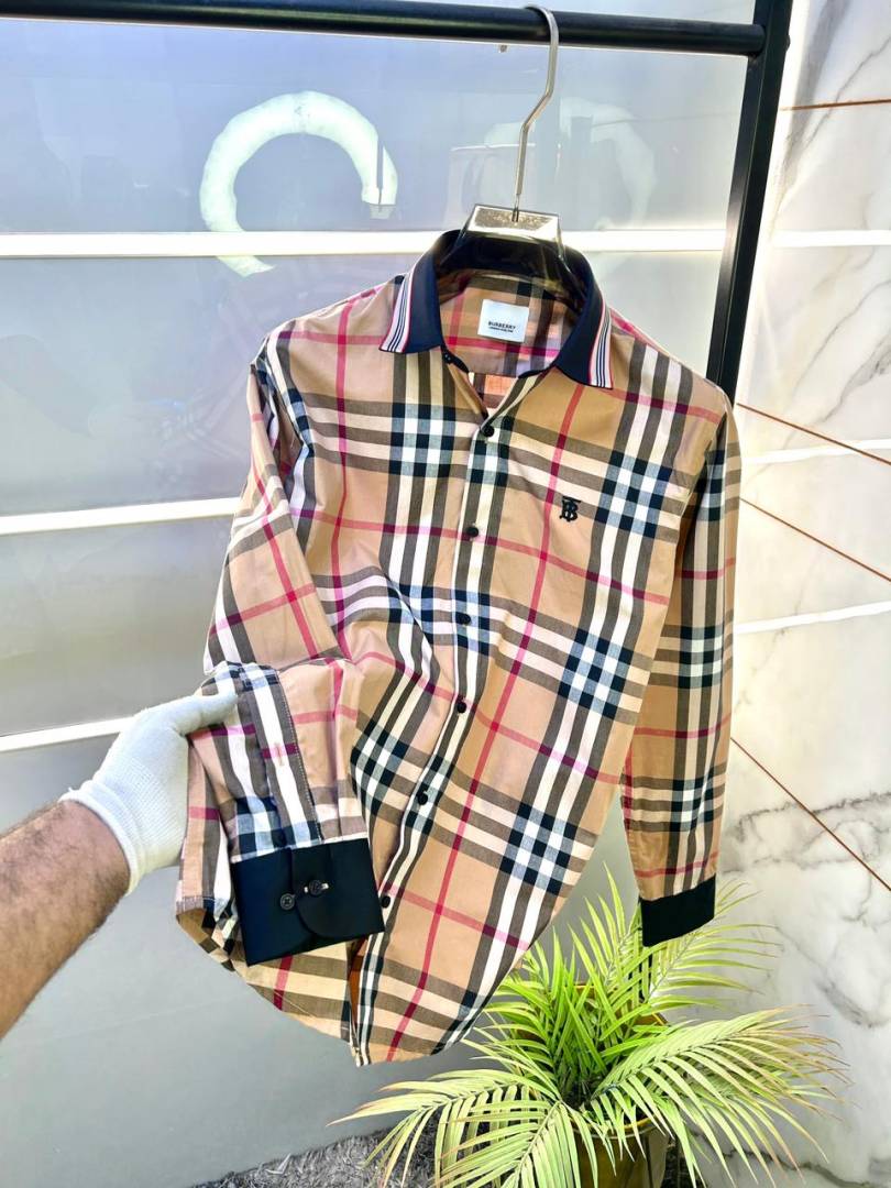 Burberr y Checks Brown Embroidery Logo Premium Shirt With Brand Box Packing and carry bag F3363-BR