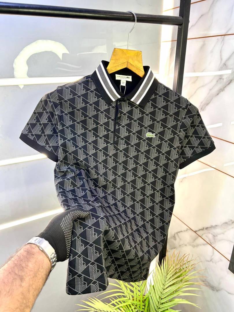 Lacost e Black Monogram Polo Premium Collar Neck T-shirt F3184-BL
