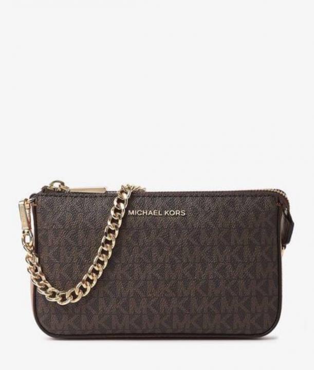 MICHAEL_KORS_JET_SET_HEAVY_QUALITY_SMALL_CHAIN_POUCHETTE_BAG_WITH_DUSTBAG_CARDS_TAGS_ETC(coffeebrown)