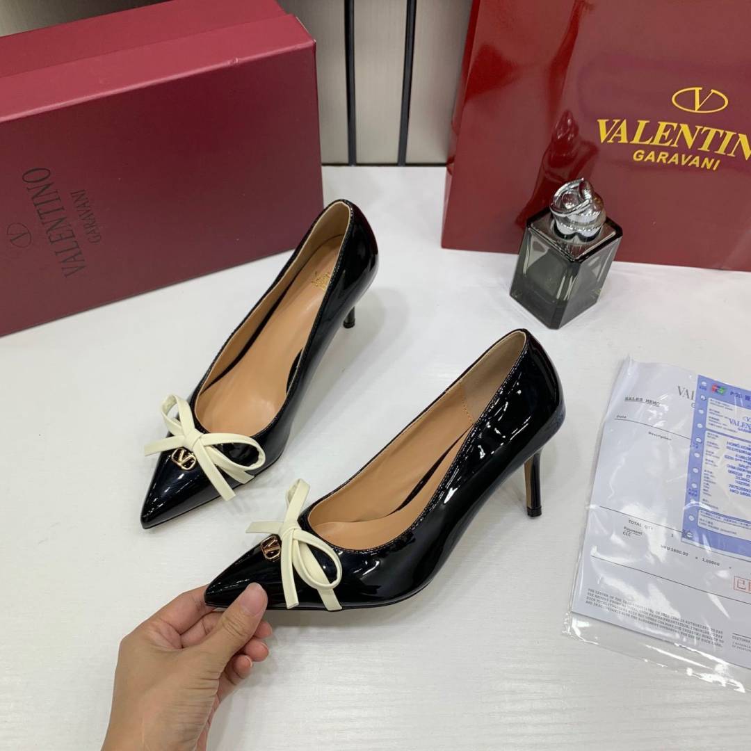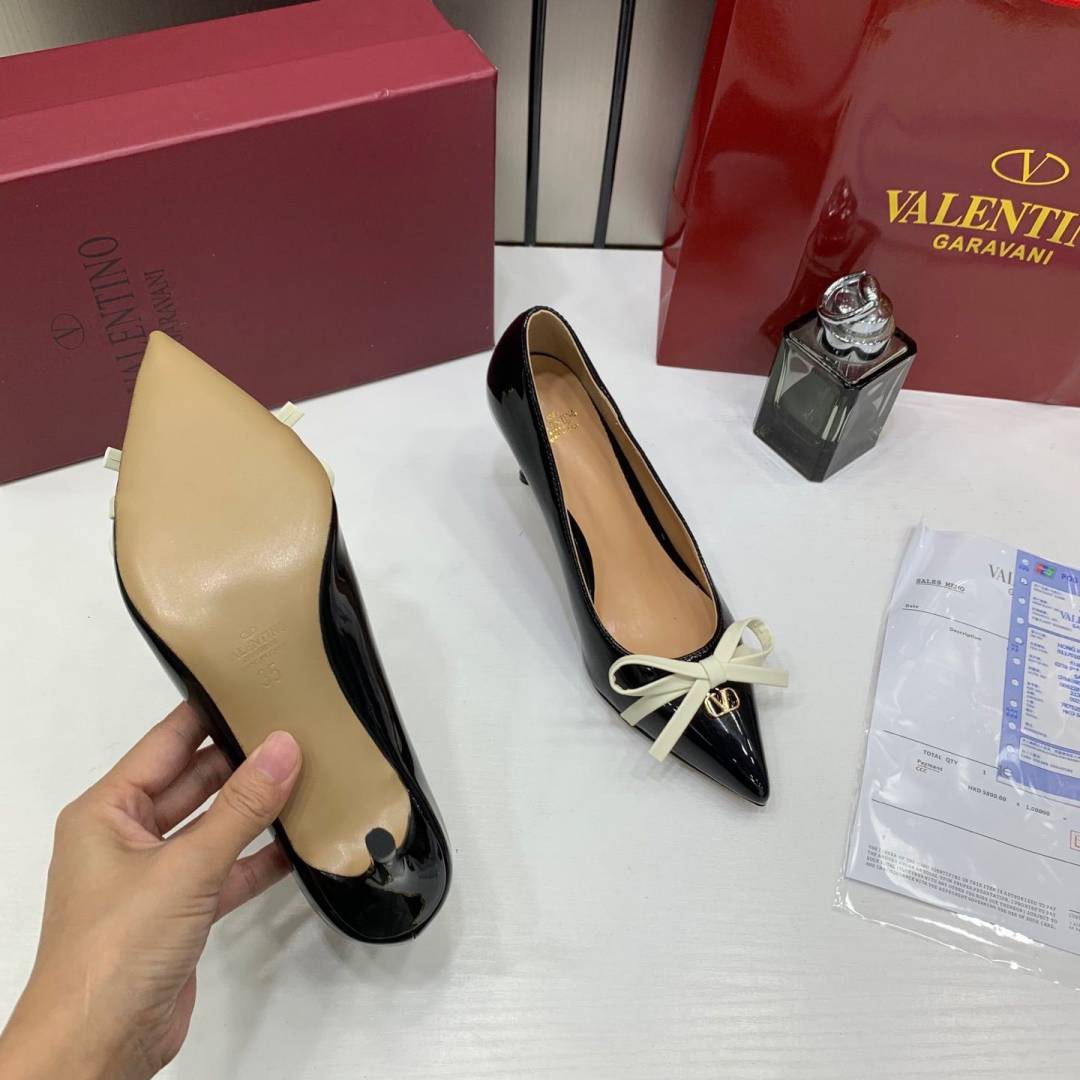 Valentino_Pump_Heel_Elegant_Womens_Black_Patent_Leather_With_White_Knot_With_OG_Box_&_Carry_Bag_933-V9_Black